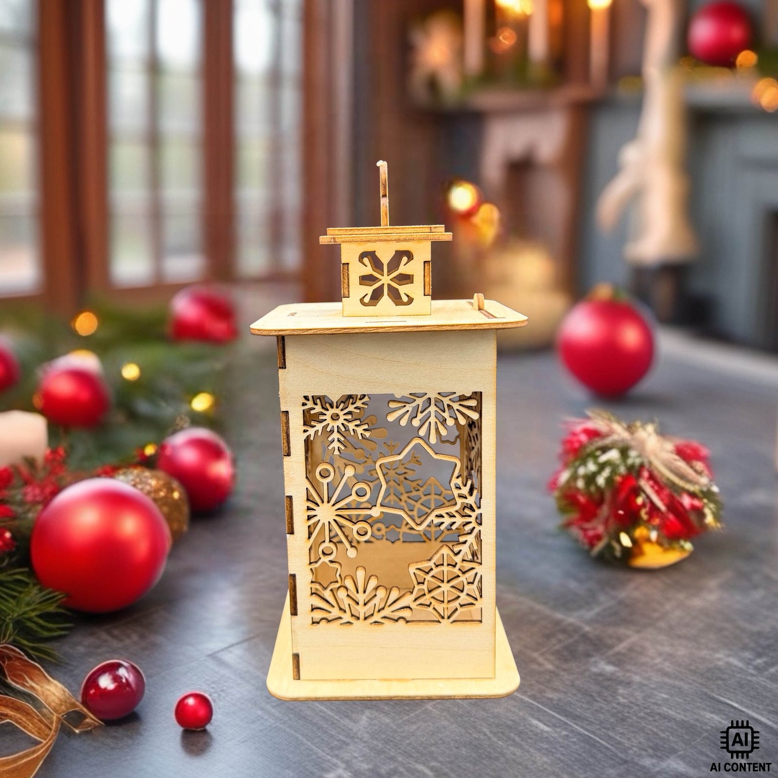 Holzlaterne mit filigranen Schneekristall-Motiven, weihnachtliche Dekoration aus Holz im Wohnzimmer❄️ Holzlaterne „Schneekristalle“✨